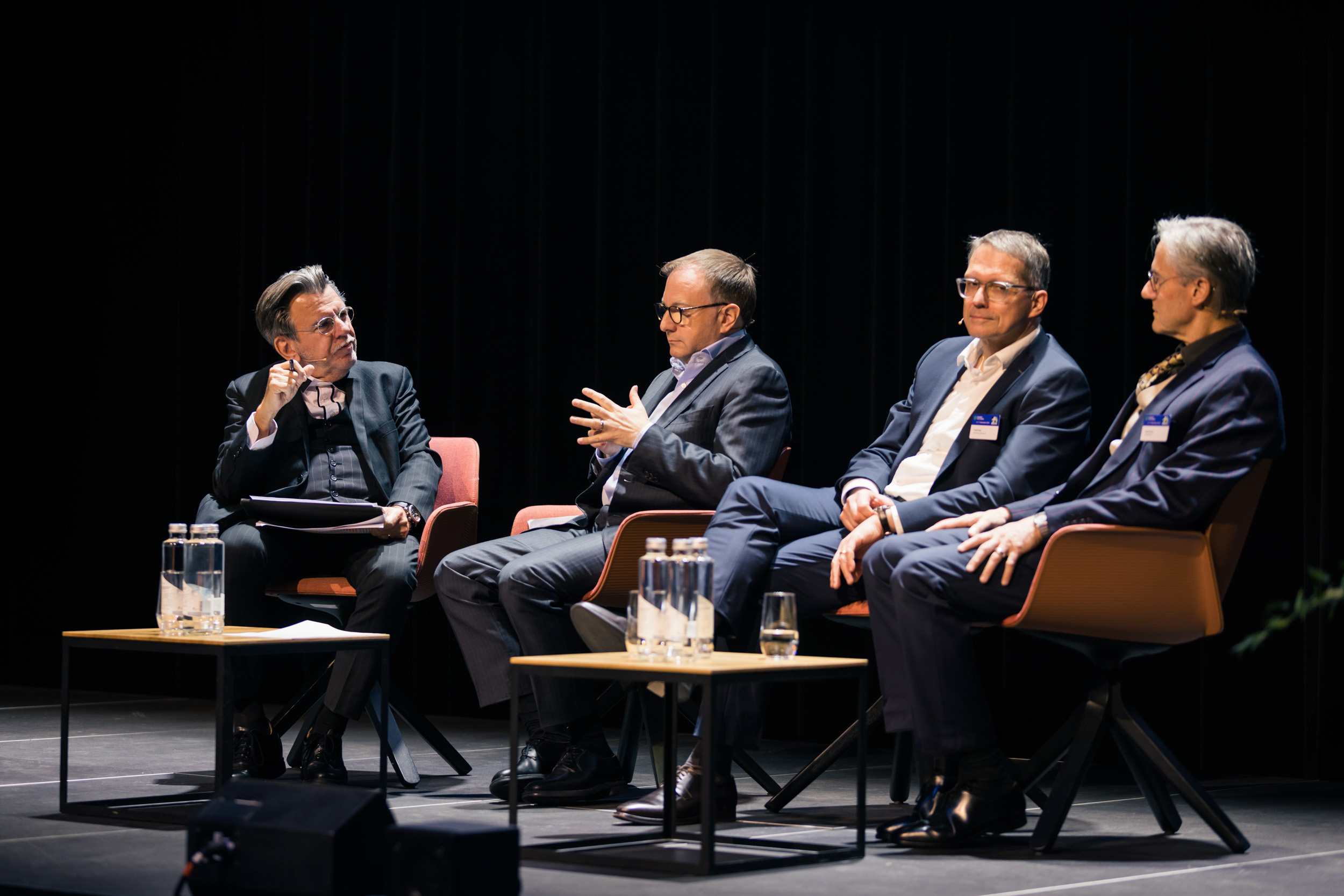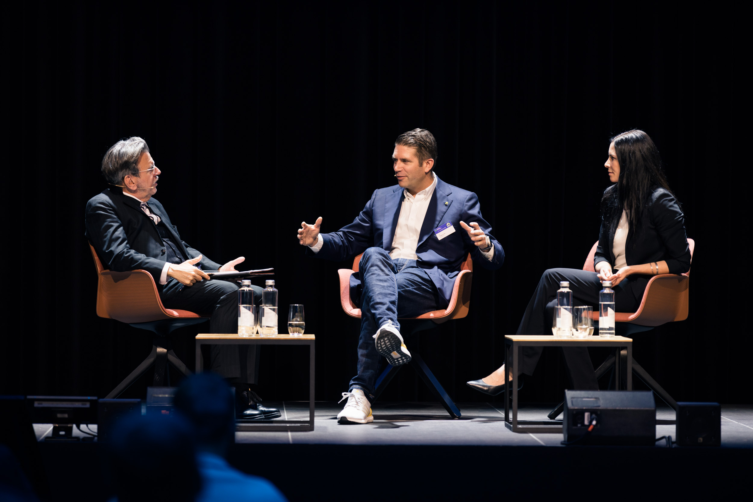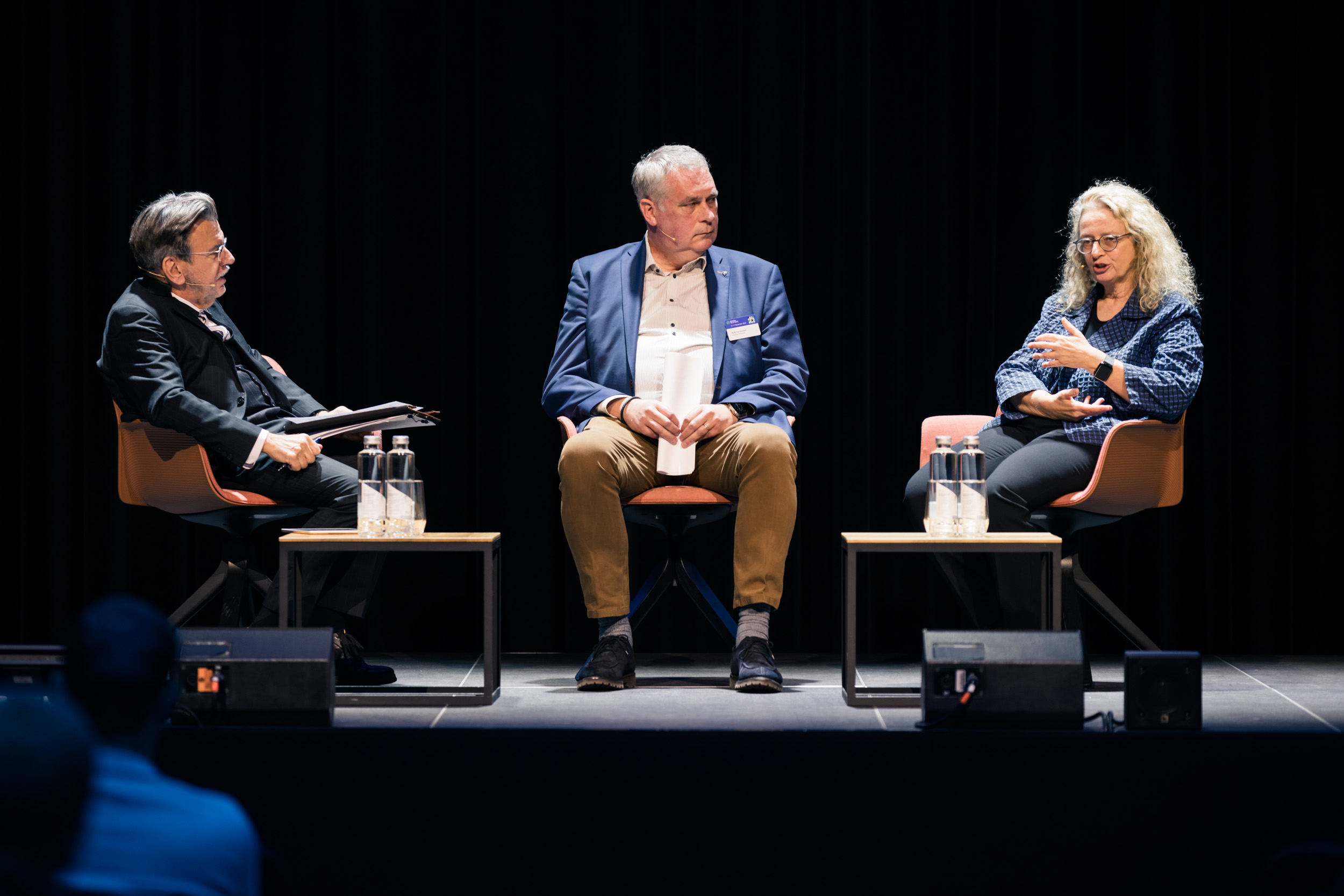 Der Nachmittag gehörte den Macherinnen und Machern in der Praxis. Melanie Heiniger, Head of Corporate Responsibility Swiss International Air Lines, klärte auf, dass es keinen Tesla im Luftverkehr gibt und der nachhaltige Luftverkehr auf einen breiten Massnahmenmix angewiesen ist, um das CO2-Reduktionsziel zu erreichen. Der Technologiehebel sind alternative Treibstoffe wie Power-to Liquid – das Geschäftsfeld von Synhelion. Am Beispiel der Luftfahrt veranschaulicht Dr. Philipp Furler, CEO und Mitgründer von Synhelion, die Wechselwirkung von Regulierung und Marktentwicklung. In Europa und den USA gelten heute Quoten für den Einsatz von Sustainable Aviation Fuels (SAF). Heute liegt der Einsatz bei 1 Mio. Tonne, bis 2050 steigt das Volumen auf 192 Tonnen. «Wir wissen, dass die regulatorische Vorgabe bis 2035 eine Verfünfzigfachung von SAF vorsieht. Das gibt eine klare Perspektive auf die Marktnachfrage», so Furler.